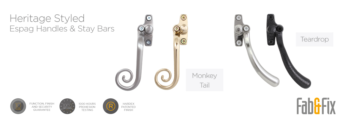 From the Fab&Fix Monkey Tail and Tear Drop handles with matching stays, that suit heritage style applications, to the popular Connoisseur or Maxim handles for a more classic look.