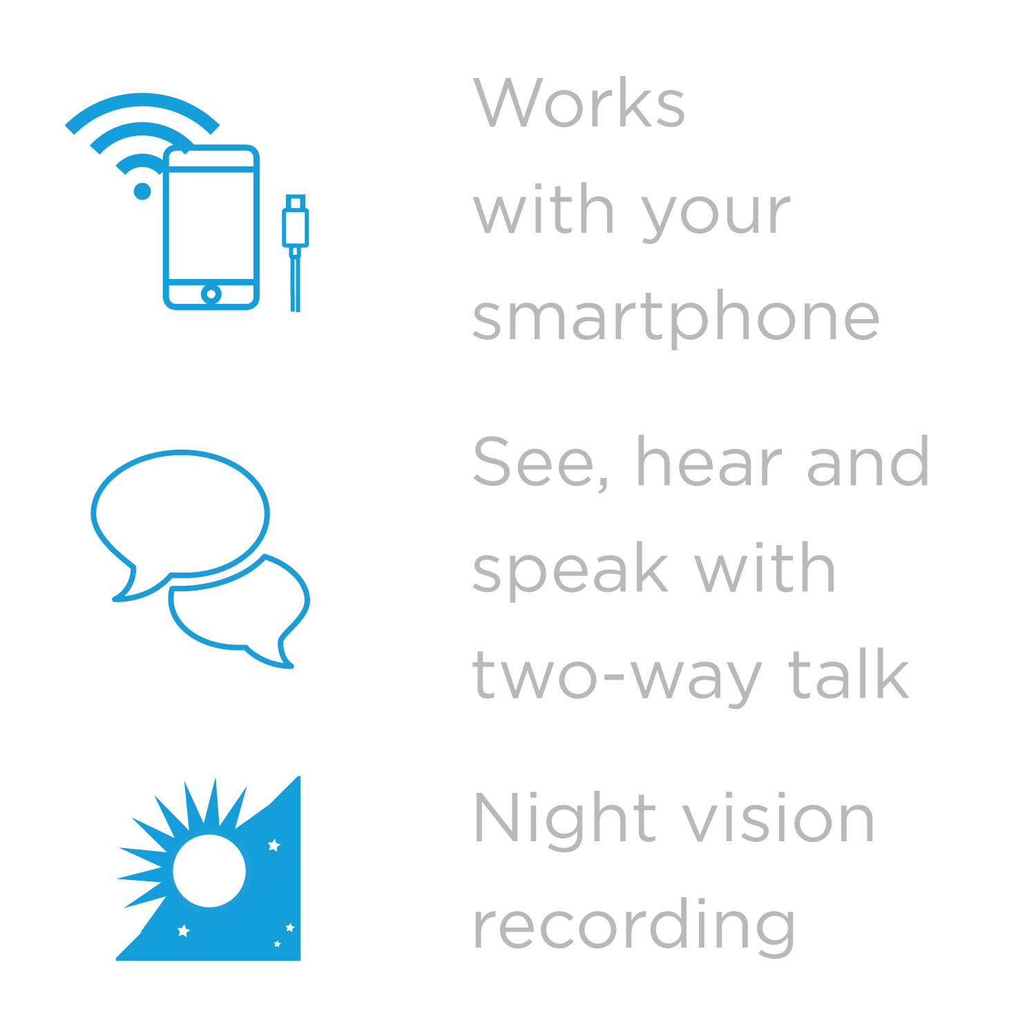 The ERA Protect Indoor WiFi Camera alerts you when motion has been detected. You can watch live video and review stored recordings from the ERA Cloud.