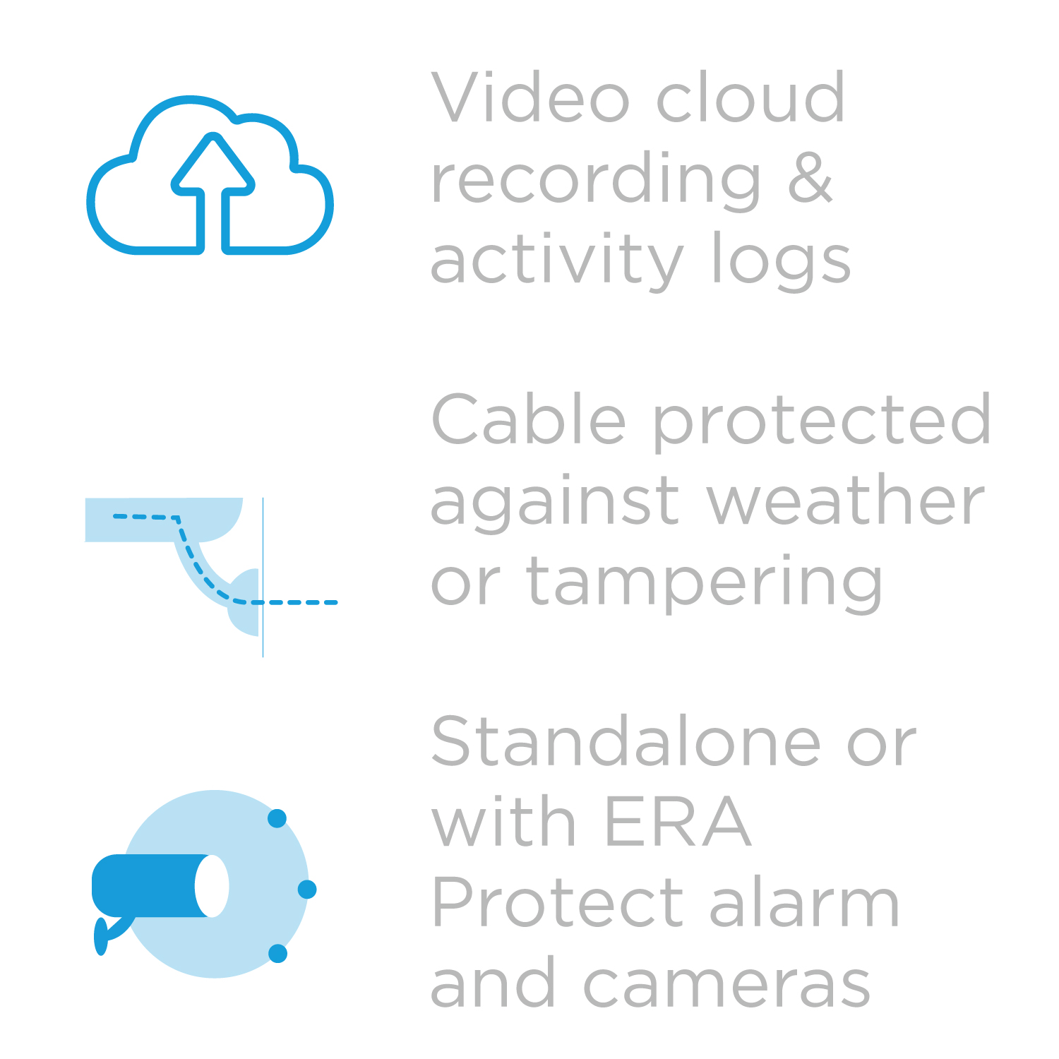 See and hear what’s happening outside your property from anywhere, on your smartphone or tablet. Your ERA Protect Outdoor Camera alerts you when motion is detected. Watch live or review recordings in the cloud.